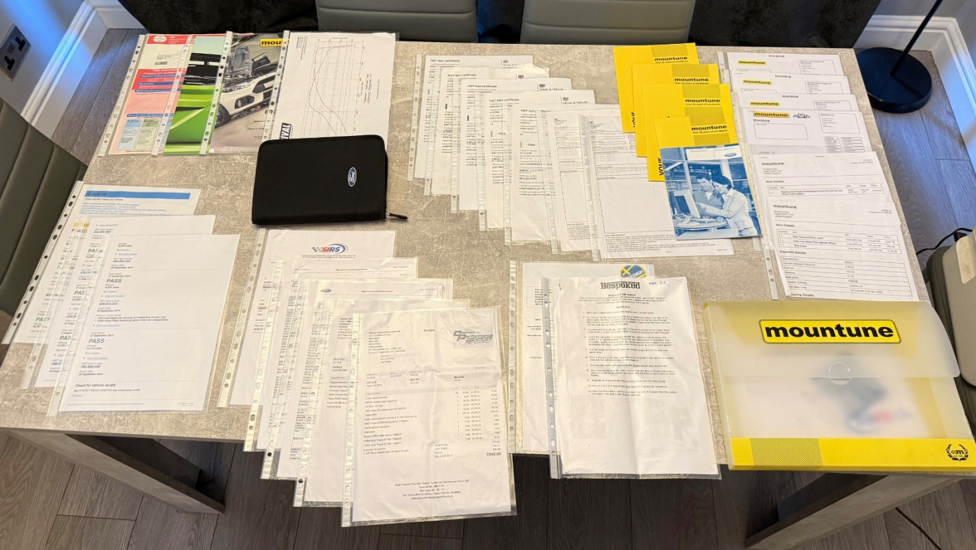 All paperwork for mountune work and servicing in big folder with various other reciepts etc